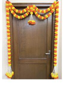 SPHINX ARTIFICIAL MARIGOLD FLUFFY FLOWERS AND TUBEROSE(RAJNIGANDHA) DOOR TORAN SET/DOOR HANGINGS – LIGHT ORANGE ( APPROX. 100 X 158 CMS)